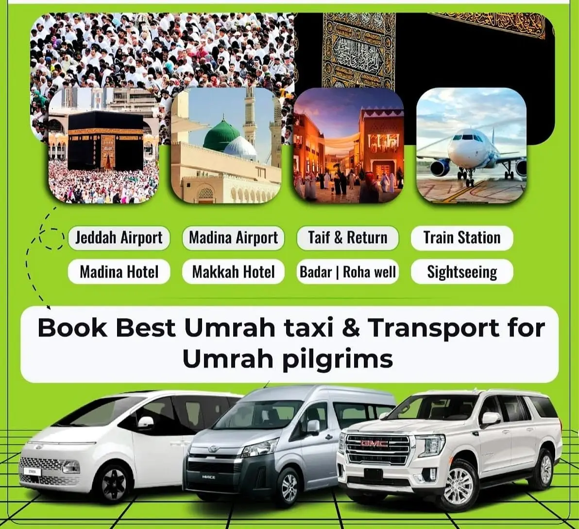 Travel safely and comfortably from Madina to Makkah taxi with Umrah Pilgrim Taxi. Book your reliable Madina to Makkah taxi service via WhatsApp +966 59 349 4731 for hassle-free Umrah transfers.